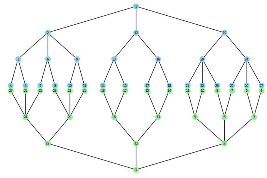 [3, 3, 3, 3, 3, 3, 3, 4, 4, 4, 4, 4, 4, 4, 4, 4, 4, 4, 3, 3, 3]