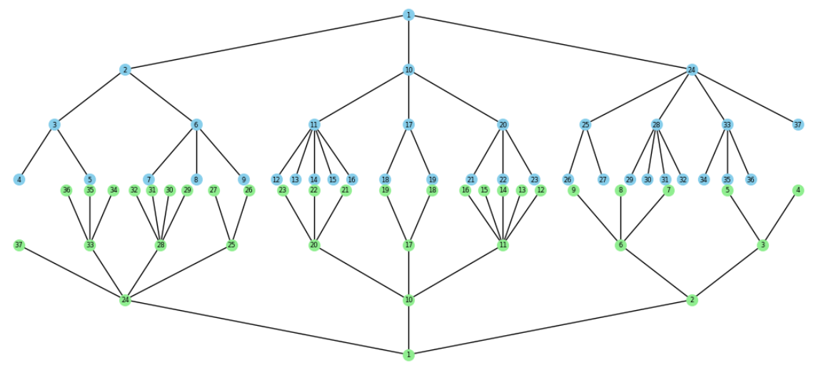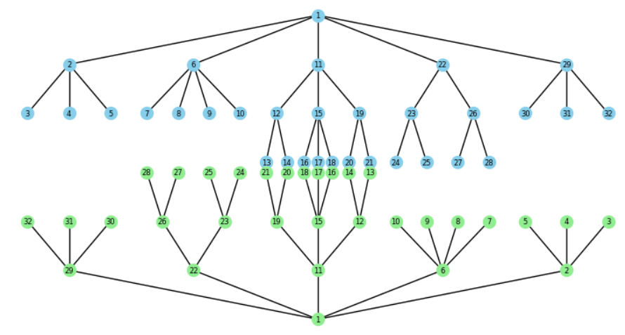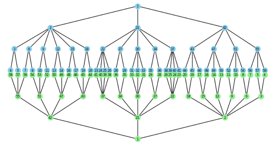 Die Folge der Blätterbreiten ist ein Palindrom.